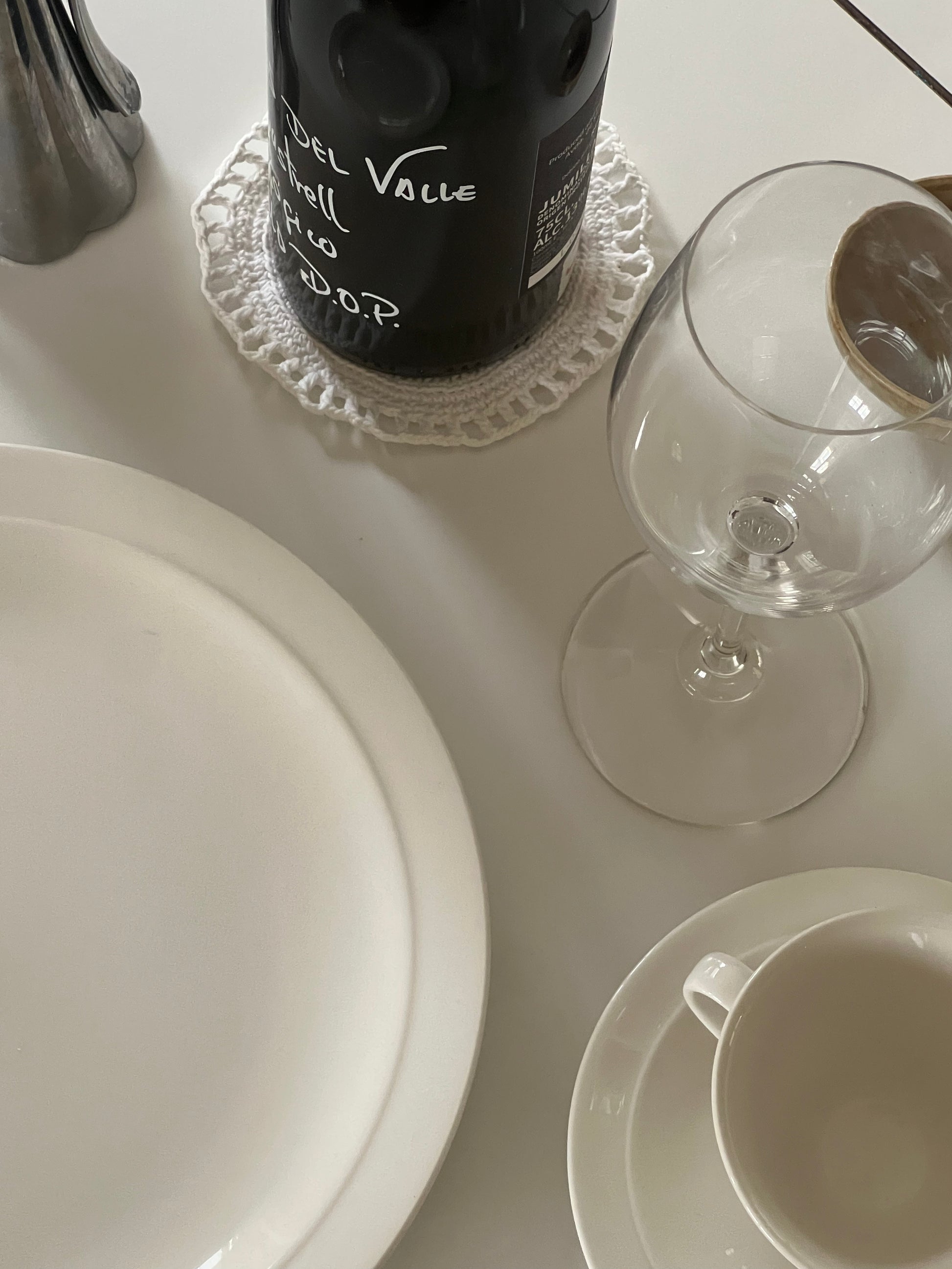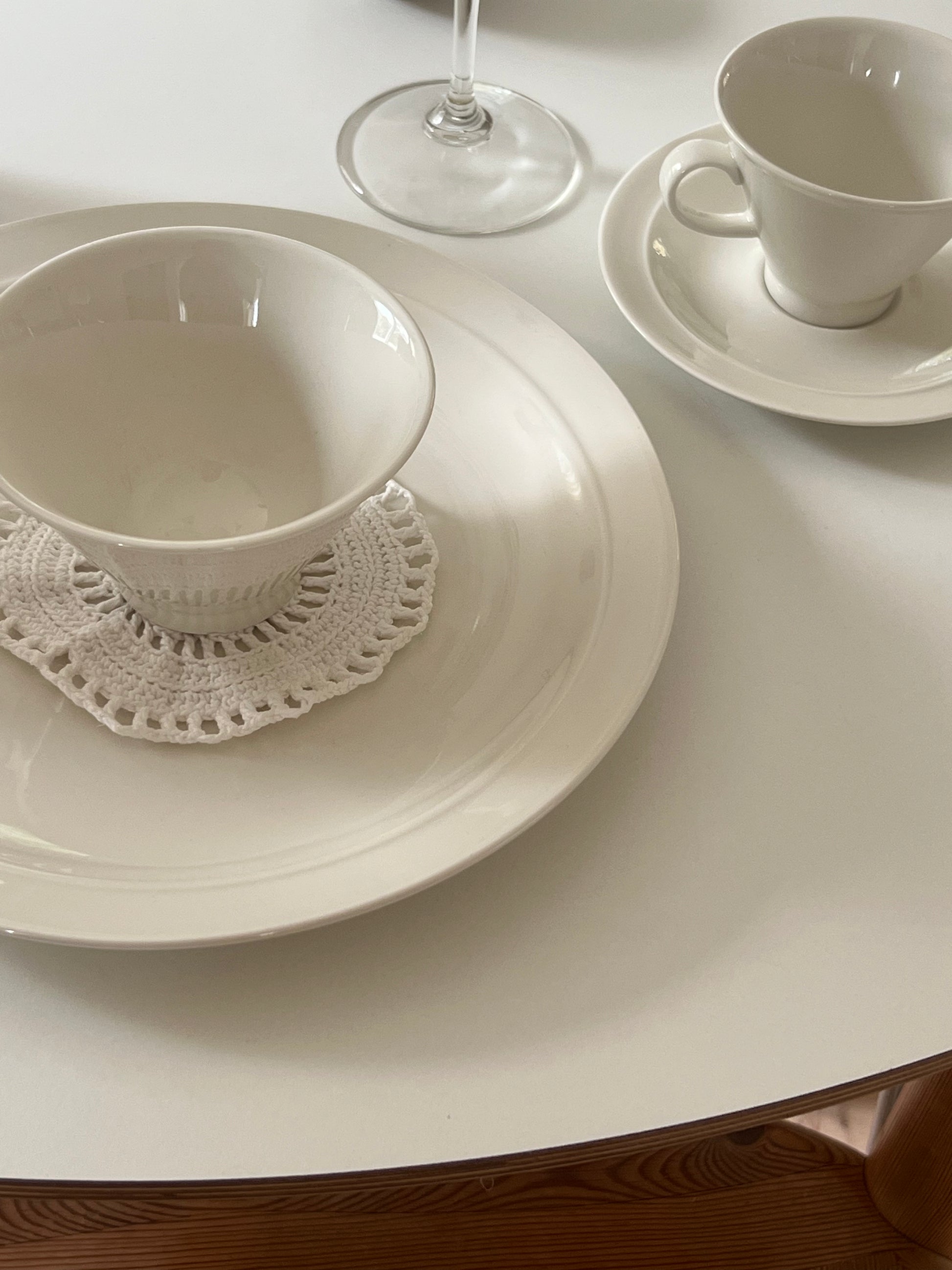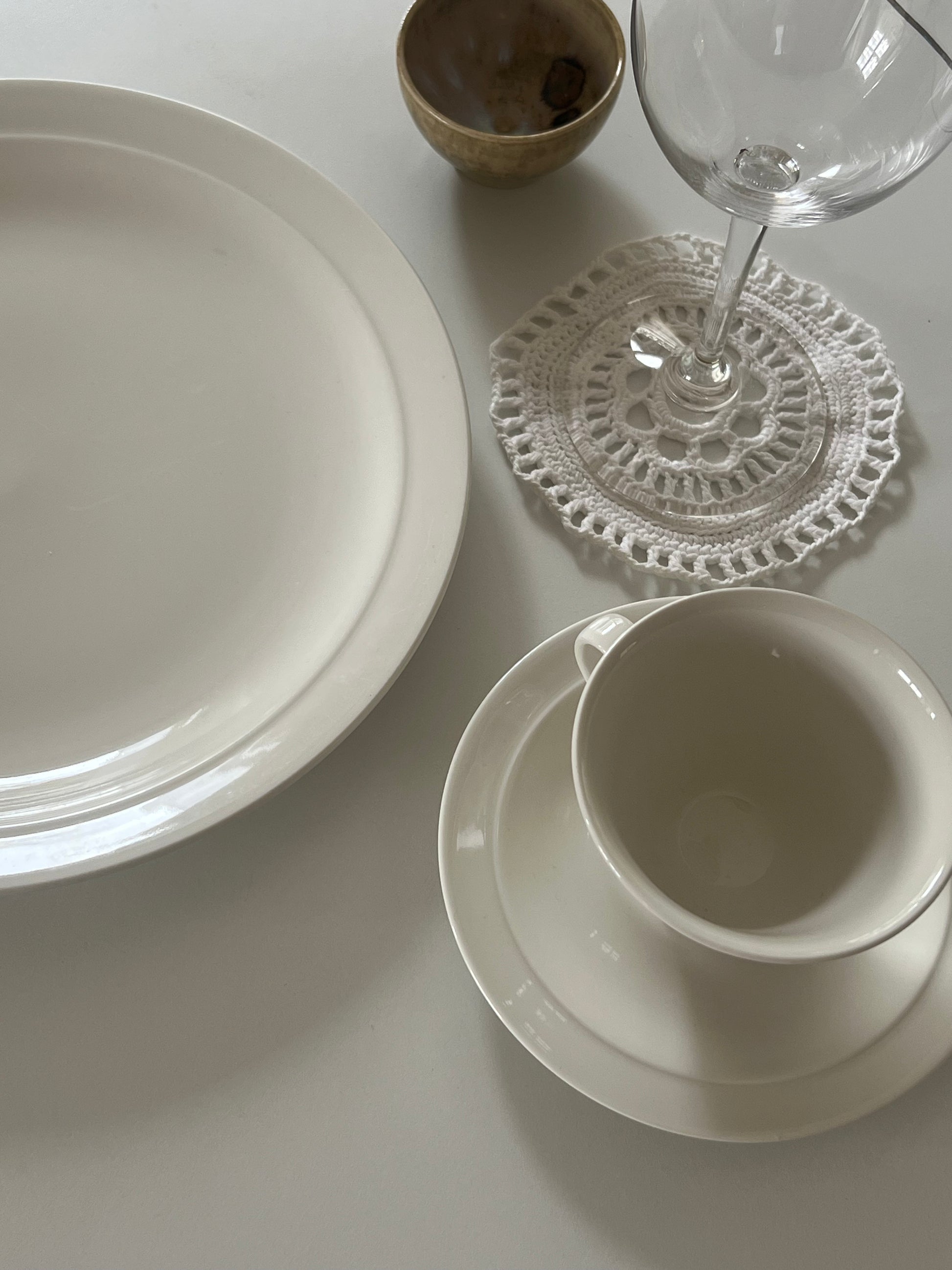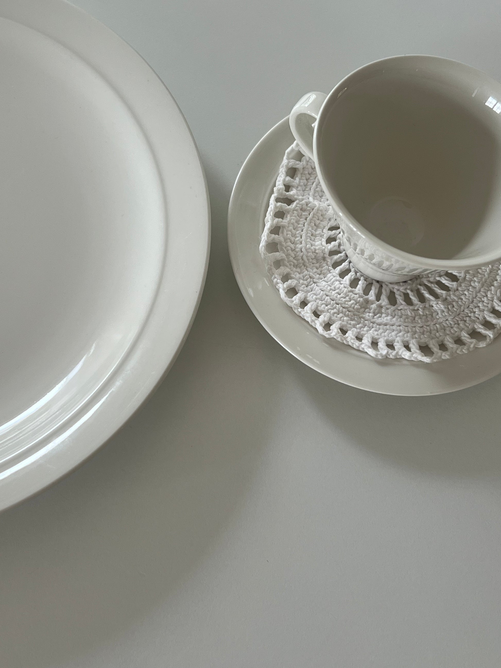 Virkade coasters, bomull. Att ha under kaffekoppen, vinsflaskan eller glaset. Kommer i 2 pack, finns fler i lager.