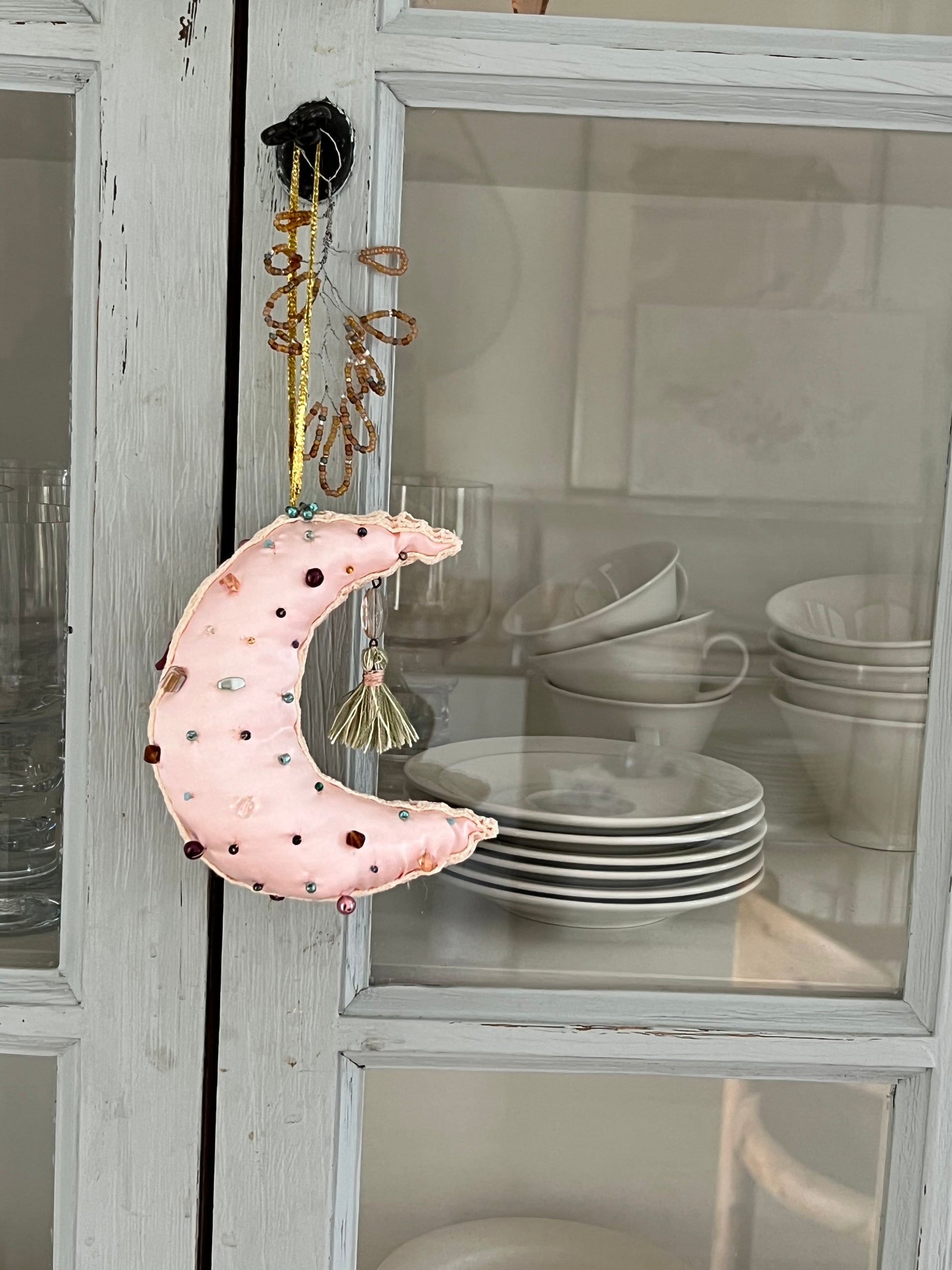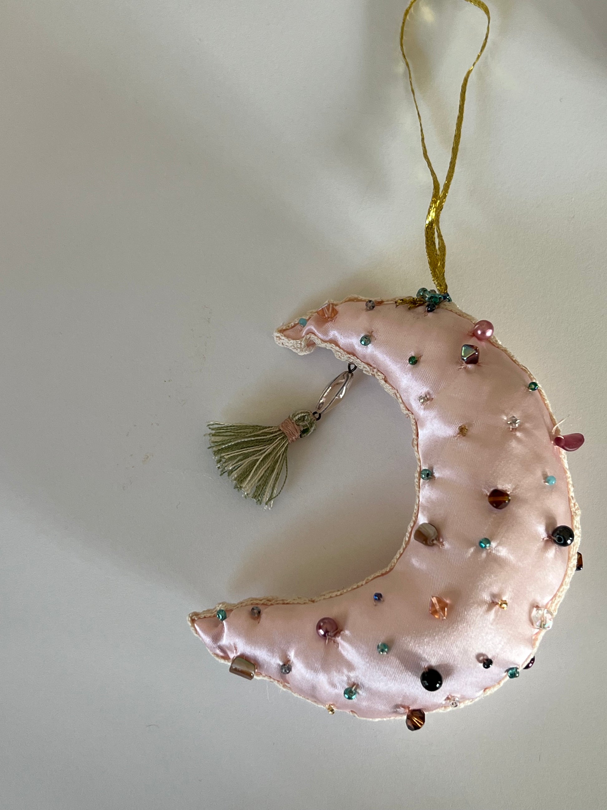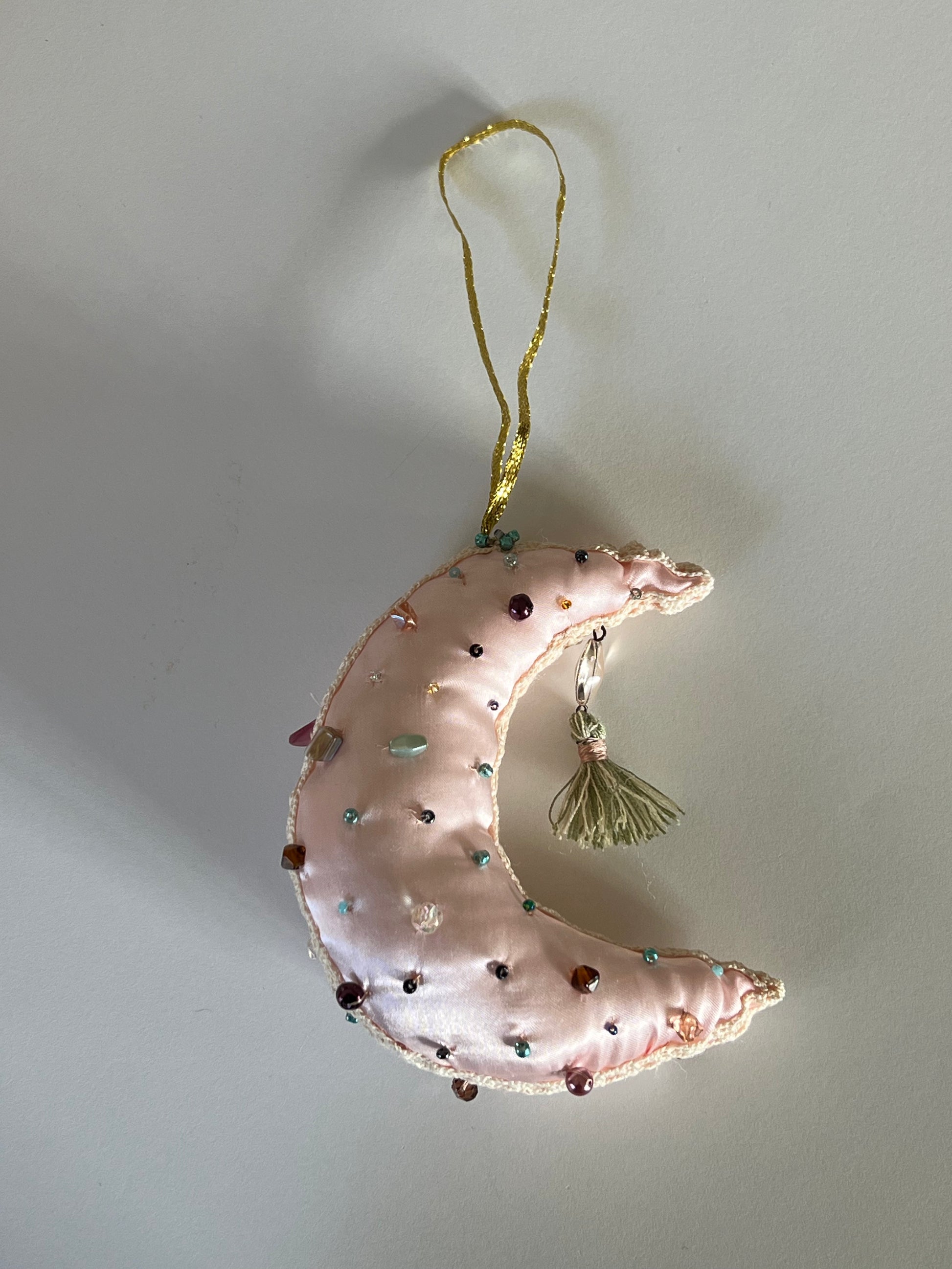 Mått: 14 cm mäter månen och totalt inklusive hänget är den 24 cm lång.