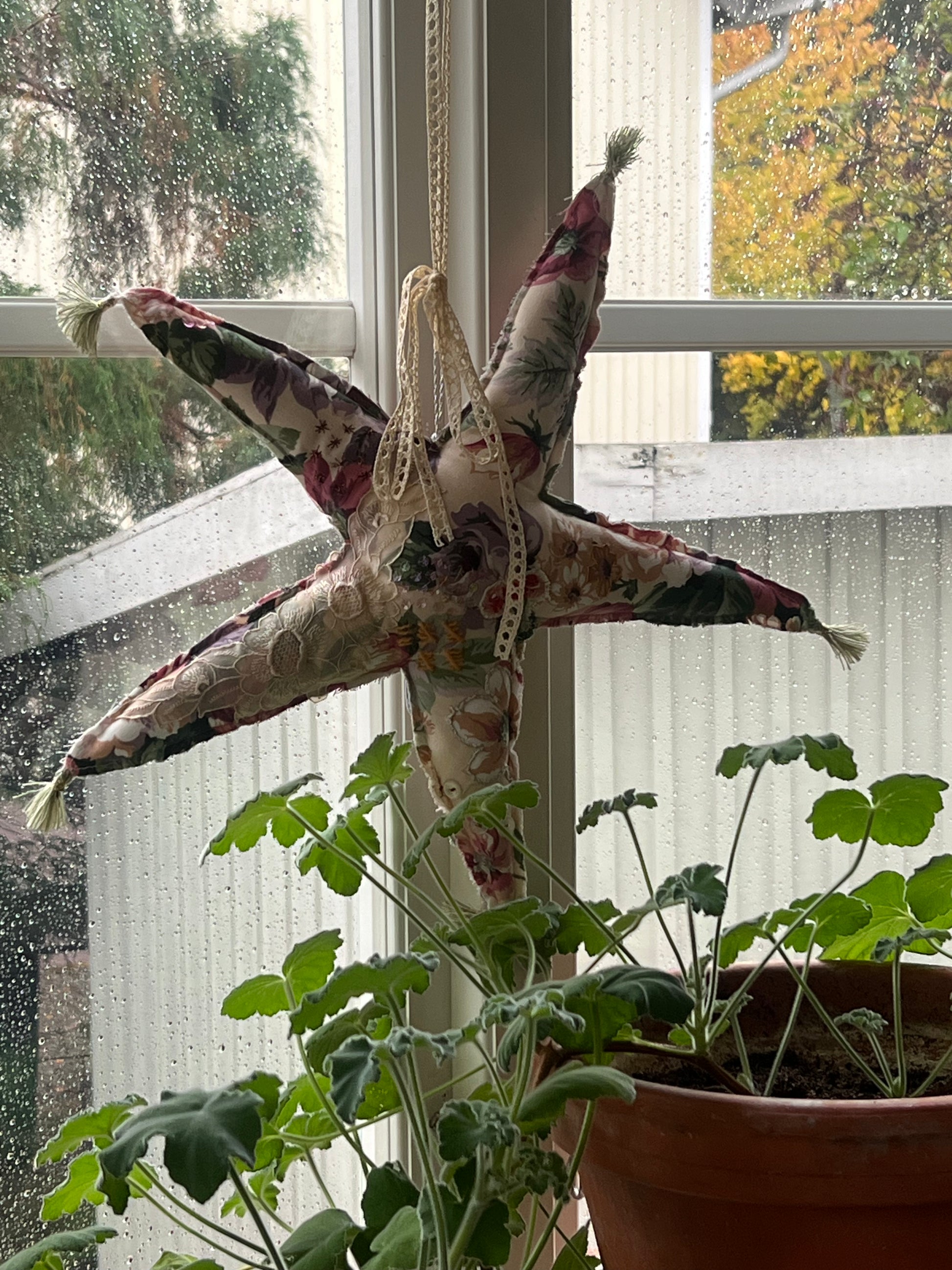 VINT:ISH Dekoration sydd helt av återbrukat material. Att hänga som advenstsstjärna i fönstret eller tex på en dörrknopp.